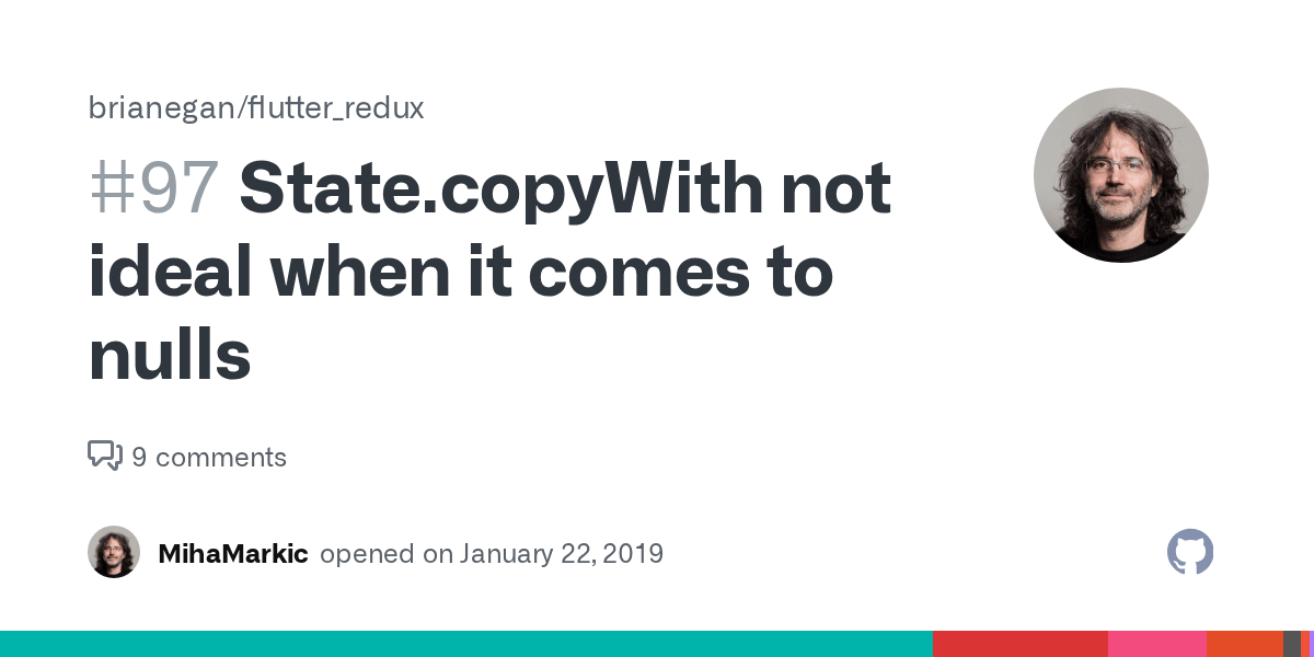 Active 2 years, 4 months ago... Null) and copywith() where the former should assign null to name and the latter just do nothing I believe the issue is that we cannot easily differentiate between copywith(name: The following will throw an error: Ask question asked 2 years, 4 months ago. Right now, null can be assigned to any assignable variable. In order to let the method be aware of the given values being null, we create a wrapper around a given type. Copyable { /// copy the current object. Do you know of any way to overcome this problem in dart?.. I am also very excited about the upcoming null safety which should help us …